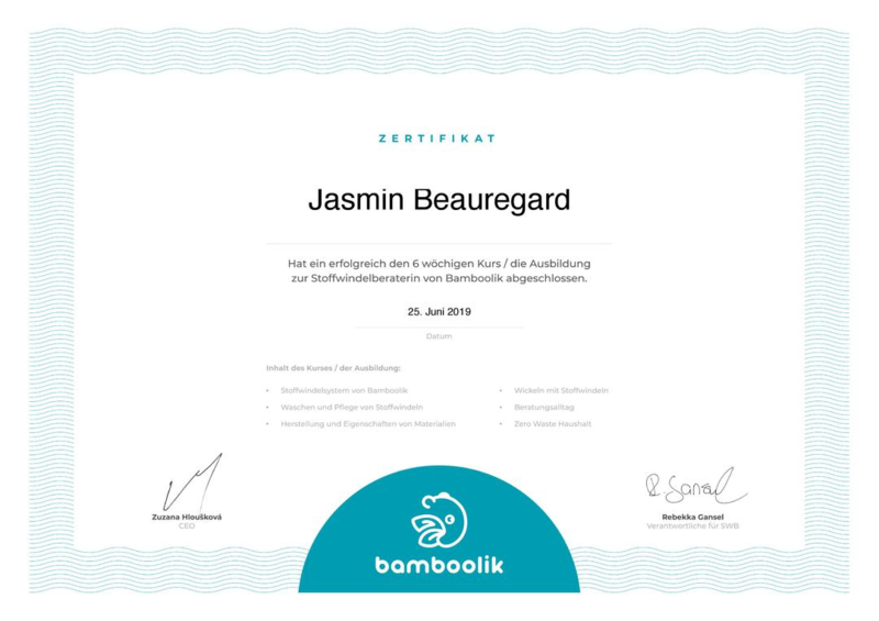 - Juni 2019: Ausbildung zur Stoffwindelberaterin der Firma Bamboolik