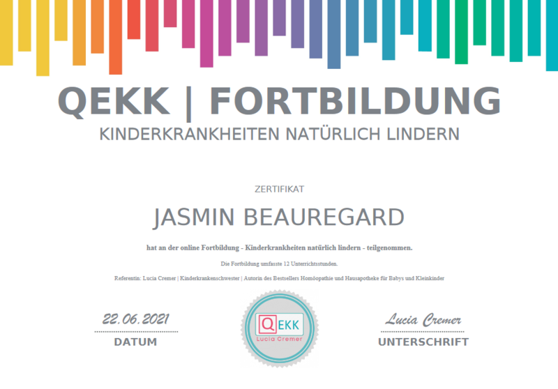 - Juni 2021: Fortbildung "Kinderkrankheiten natürlich lindern" bei Lucia Cremer (Autorin, Kinderkrankenschwester)