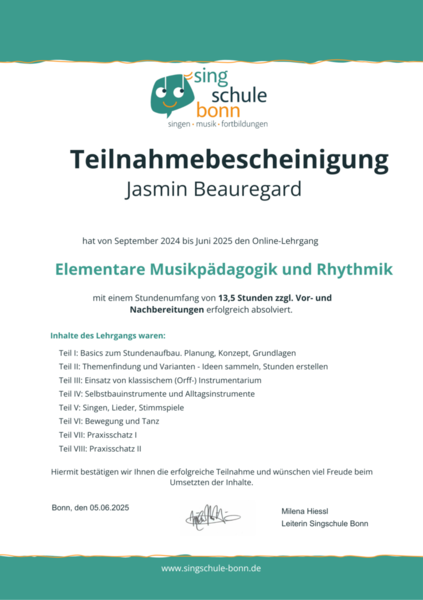 - September 2022: Kinderchorleitung Basics Grundschule & OGS (Singschule Bonn) bei Milena Hiessl